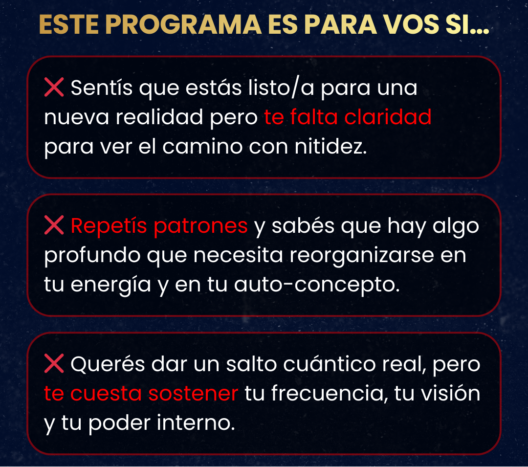 "Este programa fue literalmente un portal. La combinación de coaching y sanación cuántica me hizo integrar cosas que venía trabajando desde hace tiempo pero nunca terminaban de acomodarse. Cerré un ciclo muy profundo."