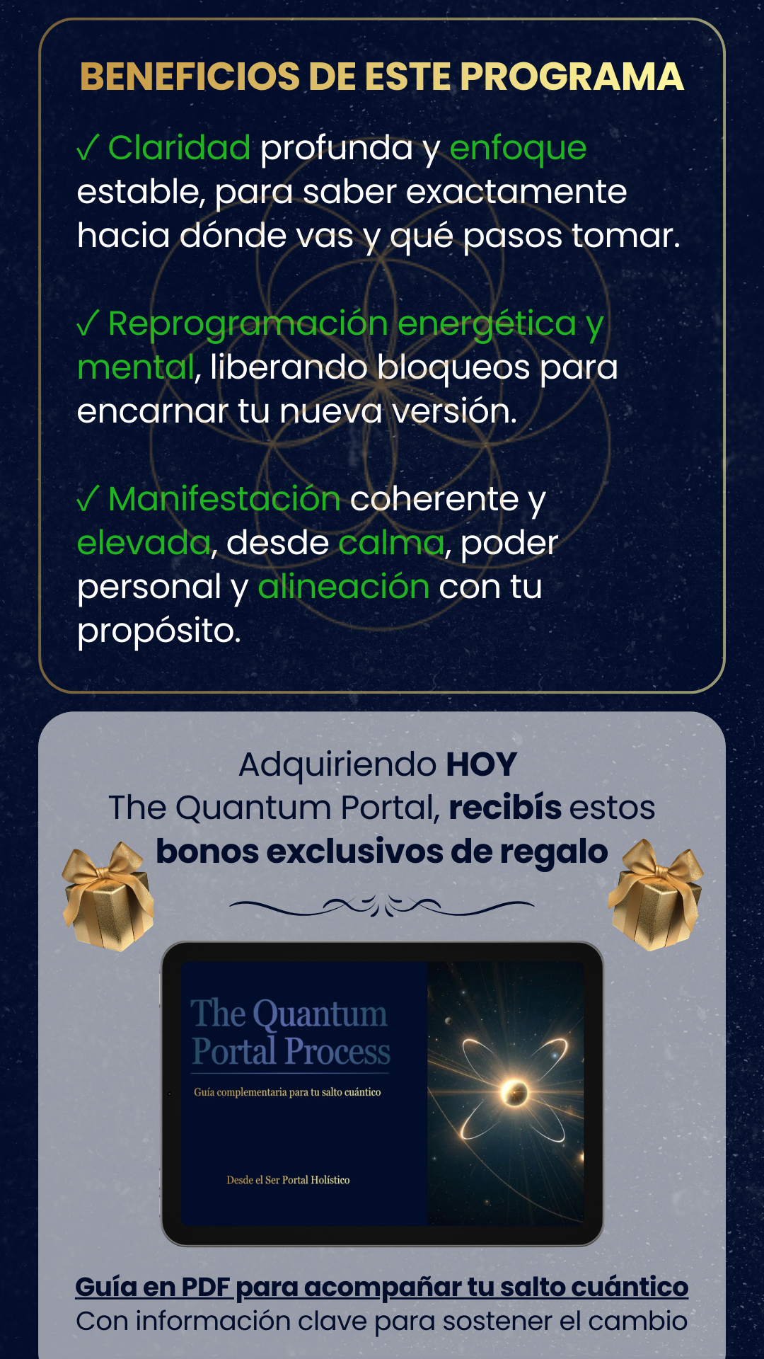 ✅ Trabajamos de forma personalizada a través de videollamada. Primero definimos tus objetivos y luego combinamos coaching holístico y sanación cuántica para liberar bloqueos y alinear tu energía. También podemos sumar canalización de mensajes si lo deseas de forma gratuita dentro de las sesiones.