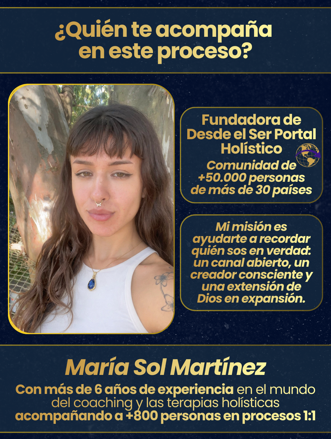 "Llegué sintiendo un nudo interno, sin claridad y muy desconectada de mí. Las sesiones 1:1 fueron un antes y un después: Sol me ayudó a ver patrones que nunca había notado. Las meditaciones del programa me ordenaron la energía de una forma impresionante."